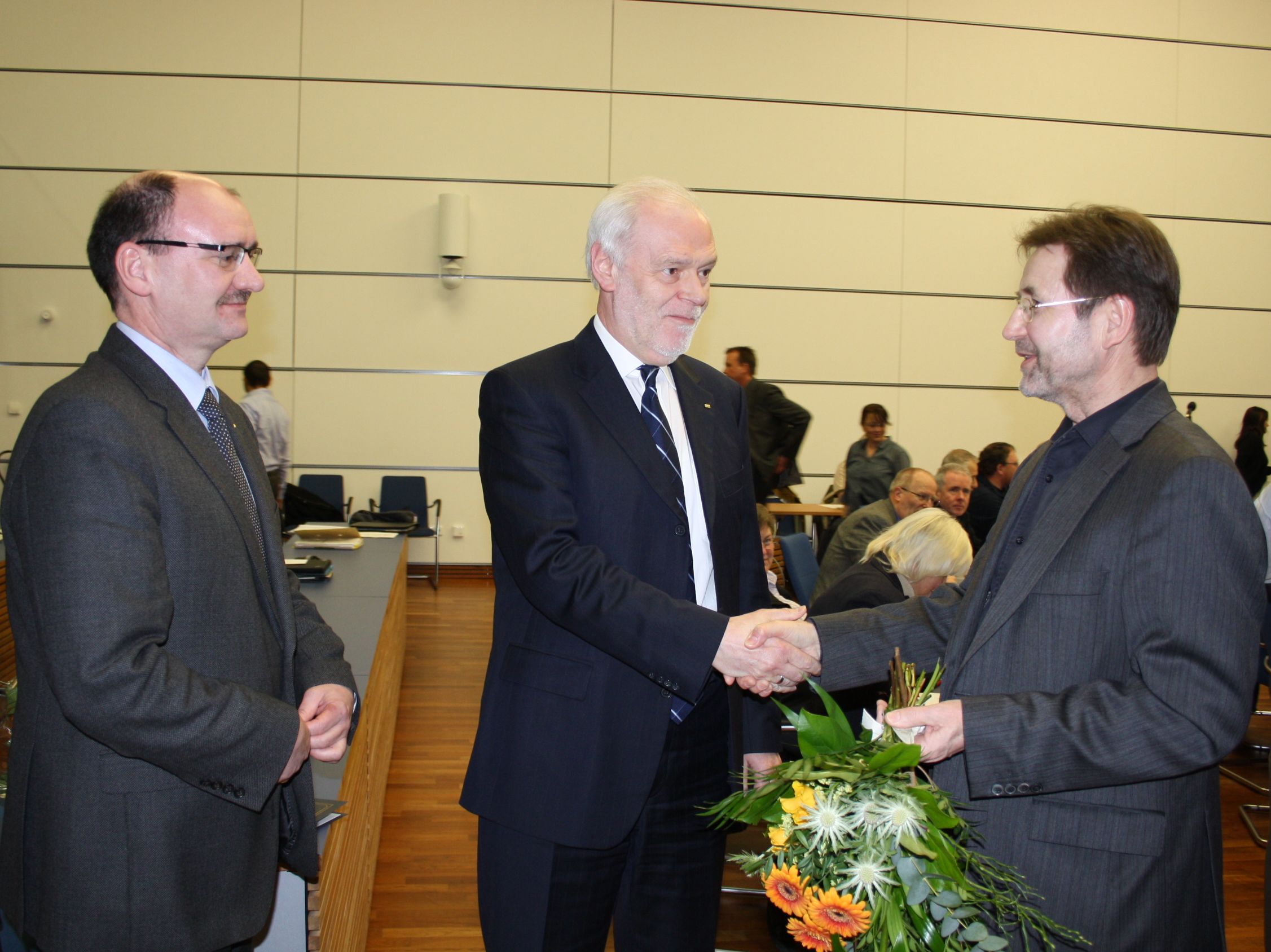 Fraktionsvorsitzender Hans-Dieter Bromberg gratuliert den neuen Ehrenbotschaftern der Landeshauptstadt Magdeburg „FAM GmbH“